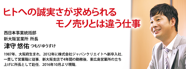 現在の営業所に配属されて1ヵ月後、未開拓だった石川県にレンタカーで乗り込み、1000万円ほどの仕事を開拓できたときは、「これで拠点の一員として胸を張れる」とホッとしました。