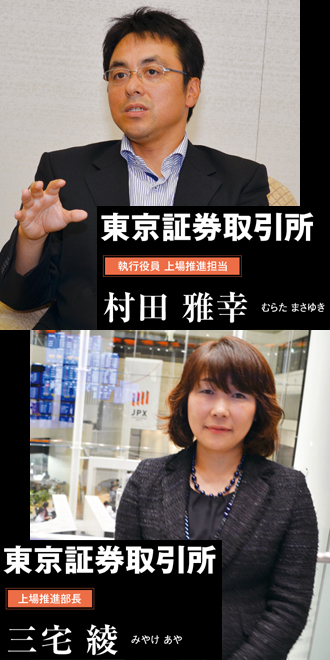 東京証券取引所執行役員として上場推進を担当する村田氏は、次のように語る。「上場を果たした経営者は、上場後に経験のないさまざまな場面に直面するなか、IPOをともに実現したベンチャーキャピタルや証券会社の公開引受部門との関係はしだいに薄れてしまうことが多い。上場企業の成長が株式市場の発展につながることから、上場後にずっとお付き合いする取引所が、本則市場(市場第一部および市場第二部)へのステップアップ支援など、上場後の成長サポートにも力を入れています」。 経営者にとっては、IR戦略やさらなる成長計画の立案をはじめ、上場を果たした後も課題が山積している。だが、IPOを果たすまでアドバイスしてくれたプロたちは、上場をさかいにいなくなることが多い。その点、取引所が上場前から一貫してサポートしてくれることは心強い。また、東証・大証の統合によってIPO推進活動を全国展開することが可能になった。そのため、東京や大阪以外の地域の企業のIPO推進に力を入れている。