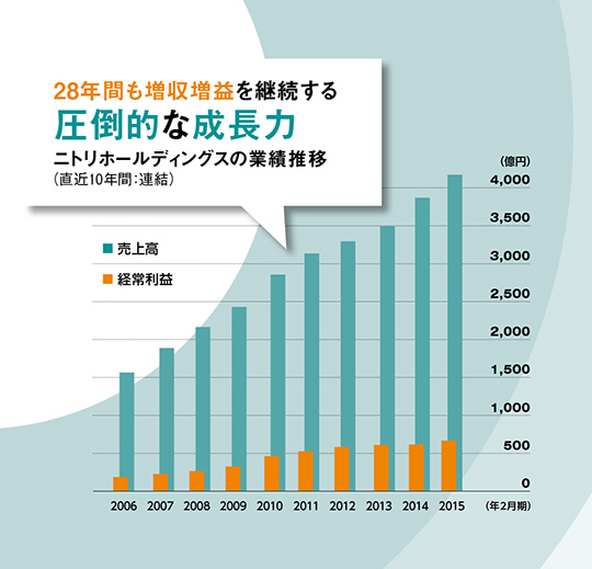 「お、ねだん以上。ニトリ」のキャッチフレーズを耳にした人は多いだろう。国内外に400店以上(2015年10月末時点)、中国や米国など海外進出も加速する家具店の一大チェーンだ。躍進の背景には、1967年の1号店開業から指揮をとる代表の似鳥氏の惜しみない人財への投資があった。流通業界に巨大なイノベーションを起こした人財集団をどうやって育てあげたのか。「ヒトづくり」「組織づくり」にかける想いを同氏に聞いた。