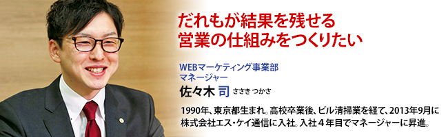 ルールと仕組みの徹底です。それらがしっかりしていれば、個々の役割を明確化でき、各部門が持ち場をしっかりと守ることに専念できる体制が構築できます。その結果、営業は商品販売のみに集中でき、最大限のパフォーマンスを発揮できるんです。これは会社全体にもいえることで、開発やサポート、バックオフィスもそれぞれが自らの仕事に集中できるため、各部門が最大の力を発揮し、エス・ケイ通信の強い組織力を形づくっているのです。