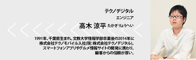 テクノデジタルの「技術力+プロデュース力」の現場での実践を明らかにするため、凸版印刷の国内最大級の電子チラシサービス『Shufoo ! 』改修の現場を取材。同社のエンジニアである山﨑氏と、テクノデジタルの若手エンジニアの高木氏。改修に携わった2人に、サービスのパワーアップのために、両者がどのように協業していったのかを聞いた。