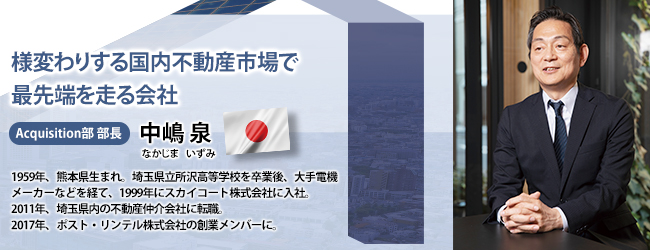 国内顧客向けに収益用不動産の販売を担当しています。当社の親会社であるポスト・リンテルでは顧客である多くの海外投資家との取引実績が多いため、海外の資産運用トレンドや、海外の富裕層が実践する最先端の投資手法に対する知見はかなり豊富です。それらのなかには、国内の顧客層にも提案できるノウハウも多くあり、そこが当社の優位性になっています。