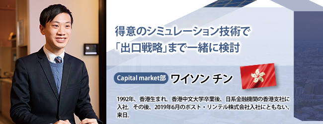 担当する顧客の多くは、私が生まれ育った香港の方々ですが、彼らはもともと不動産投資に関心が高いです。特に最近は経済不安も顕在化している香港では、安定性の高い日本の不動産は人気があり、私の力が発揮できる機会が増えています。