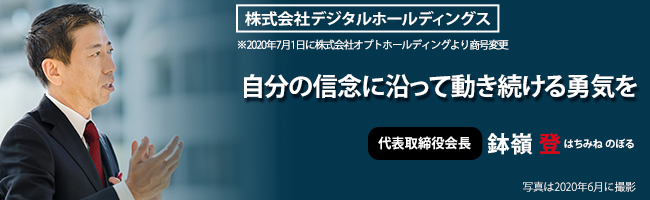 対面でのビジネスが制限を受けるなか、我々が主力事業とする「デジタルシフト」への必要性と緊急性がより高まっています。当社は、2020年4月1日に日本企業のデジタルシフトを支援する「株式会社デジタルシフト」「株式会社オプトデジタル」を新たに設立し、7月1日にはグループ全体でデジタルシフト事業へと変革していくため、「株式会社デジタルホールディングス」へと商号変更します。