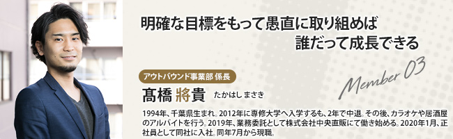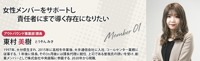 平均年齢が20代前半の中央直販では、多くの若手メンバーが重要なポストに抜擢され、それぞれ活躍している。このページからは、同社を支える3名の中心メンバーを紹介する。