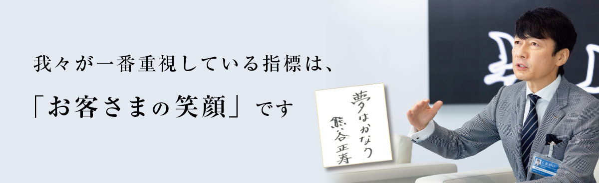 ただし、我々が一番重視している指標は、「お客さまの笑顔」です。お客さまに喜んでもらった結果が、売上であり、利益であり、市場シェアなんです。この結果を目的と混同してしまうと、組織がおかしくなってしまいます。お客さまが喜んでいない結果には、なんの意味もなく、そんなことは求めません。創業から30年間、私は「儲ける」とか「儲かる」といった言葉を使ったことは、一度としてない。一番いいサービスを提供して、一番喜んでもらいなさいと。それは、いまも変わらないスタンスです。