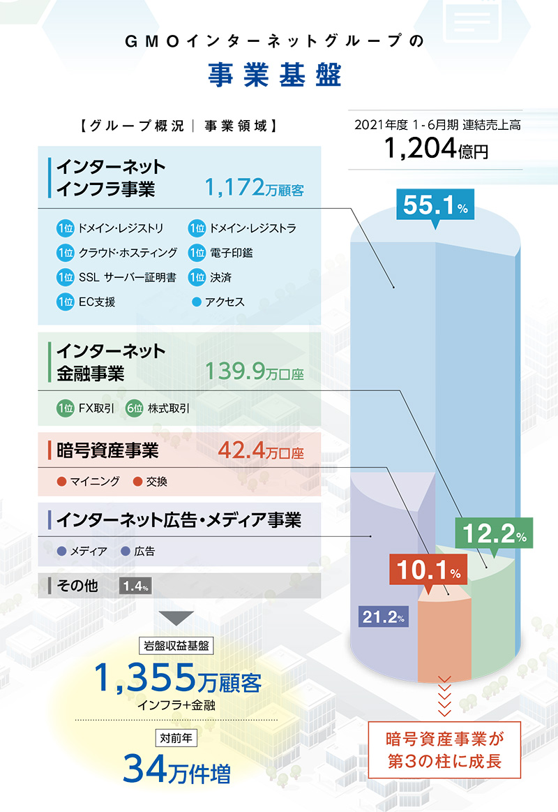 | 事業内容 | インターネットインフラ事業、インターネット広告・メディア事業、インターネット金融事業、暗号資産事業 |