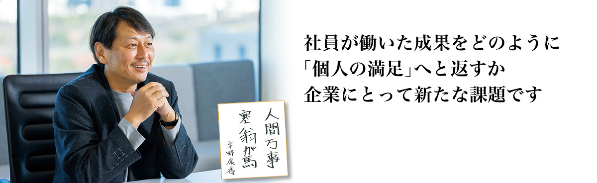 そのとおりです。グループ再統合を機に、フリーアドレス化やリモートワーク制度の導入、副業を認めるといったかたちで、当社なりの「働き方改革」を推進してきましたが、その目的は、社会から必要とされ、やりがいをもって個々人が働ける環境をつくることでした。コロナ禍によって、そうした「働く理由」を見つめ直す機会はできた一方で、こうした改革の帰結として、社員の帰属意識は薄くなり、社員にとっての「会社の意味」は変わっていかざるをえません。そのなかで、社員が働いた成果を企業としてはどのように評価し、それを「個人の満足」にどのようなかたちで返していくのか、そうした新たな課題が生まれてきているのも事実です。当社としても、まだその明確な答えは模索中ですが、コロナ禍でリモートワークや副業が一般化してきたいま、このことは多くの企業が共通して抱える課題になるのかもしれません。