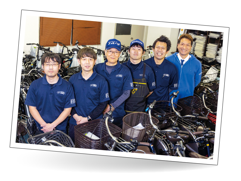 私はいまでこそ「自転車安全整備士」や「自転車技師」という資格を持っていますが、初めは自転車整備に関する知識がまったくなく、毎日が失敗の連続でした。車体をなんとか分解できても、最後に組み立て直せないといったことはしょっちゅうでした。それでもこの仕事を続けてこられたのは、「整備不良による事故を決して起こしてはならない」という責任感と同時に、修理された自転車を見て喜ぶお客さまの笑顔を見ることにやりがいを感じていたからでした。当社では、全社員に対して自転車安全整備士の資格取得を推奨するなど、整備体制をなにより重視し、お客さまの安全安心を第一とする方針を掲げています。